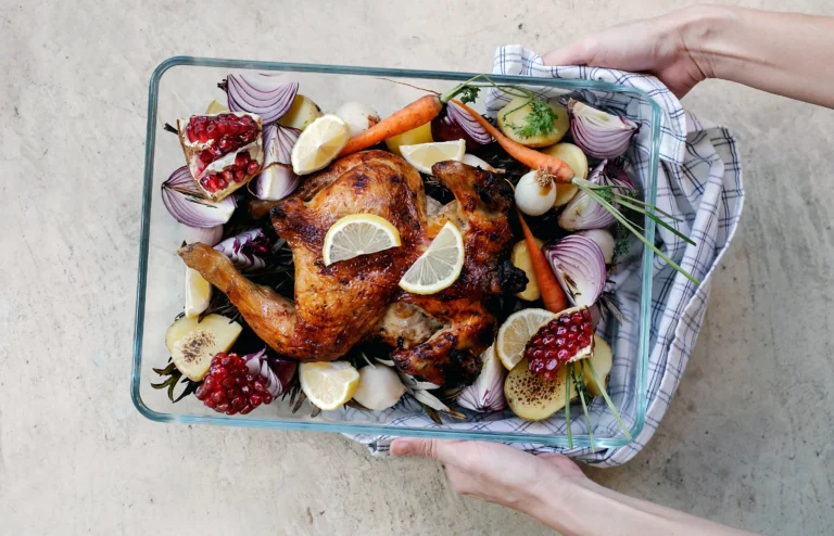 Ein klassischer englischer sunday roast ist ein traditionelles Sonntagsessen, bei dem in der Regel ein Braten, oft Rind, Huhn, Lamm oder Schwein, im Mittelpunkt steht.
