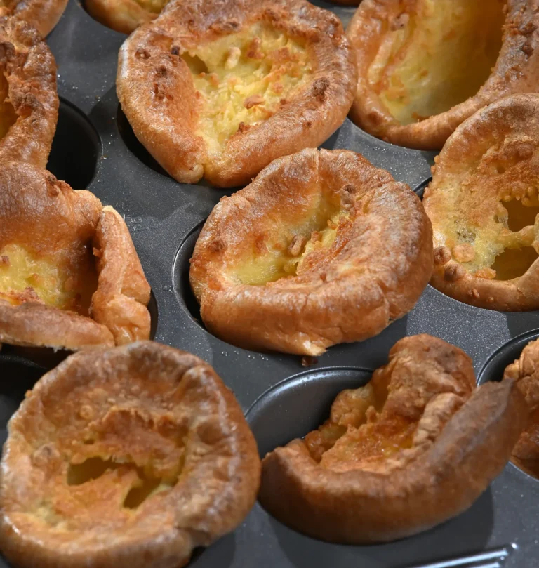 Der Yorkshire Pudding ist eine klassische salzige Beilage zu einem sunday roast oder aber er wird als süße Variante zum Dessert gereicht.