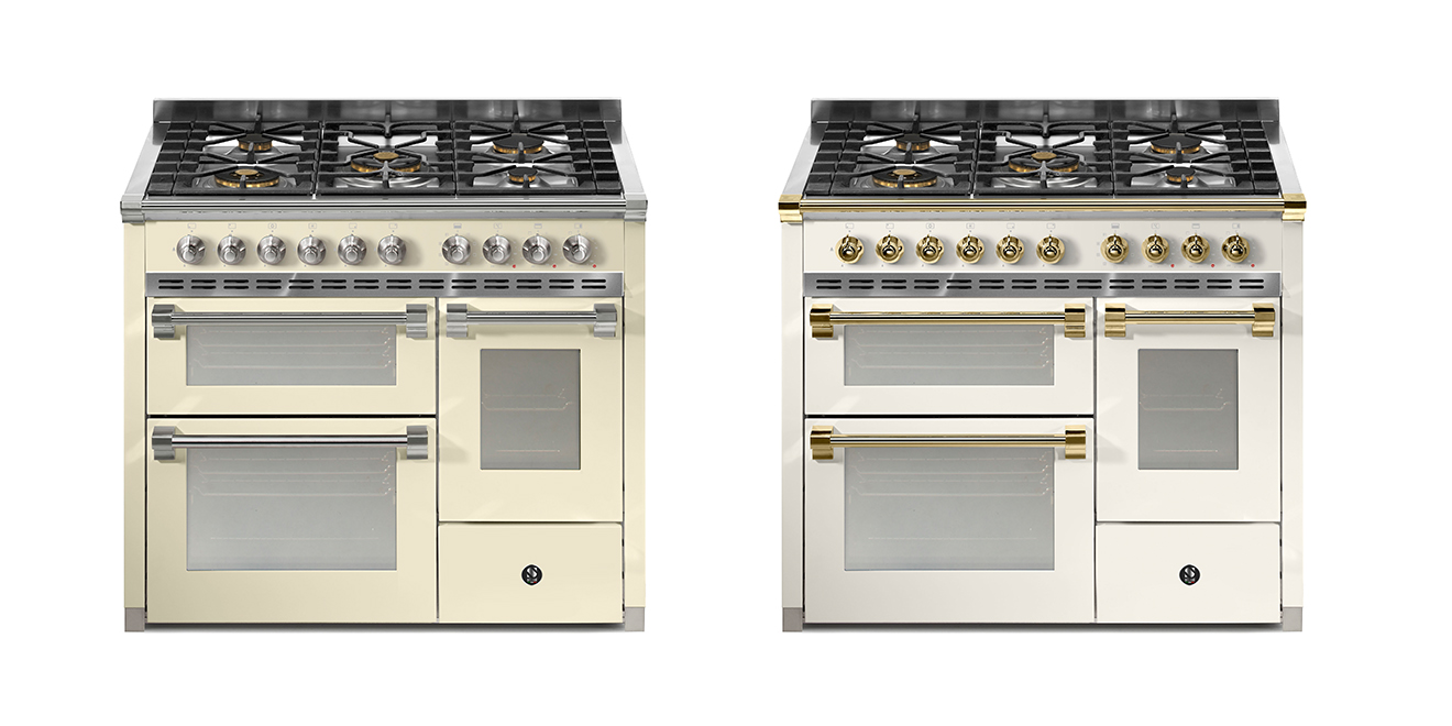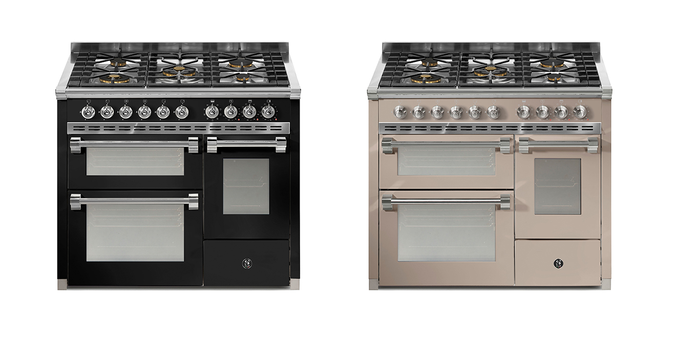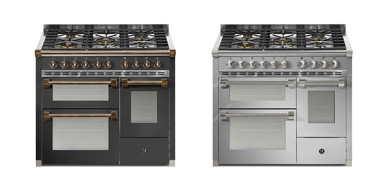 Der Herd verfügt drei Backöfen, einem Griil- und Pizzaofen, einem Elektroofen mit 34-Liter sowie einen 39-Liter-Kompaktbackofen mit Ober-/Unterhitze und Grillfunktion bis 265 °C. Alle Öfen sind mit Soft-Close-Türen, INNVENT-Heißluftsystem, Teleskopauszügen und LED-Beleuchtung ausgestattet – ideal für maximale Flexibilität auf Profi-Niveau.