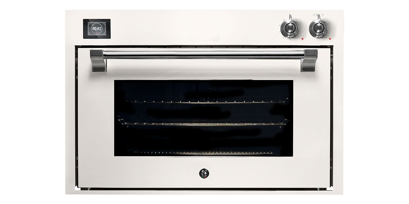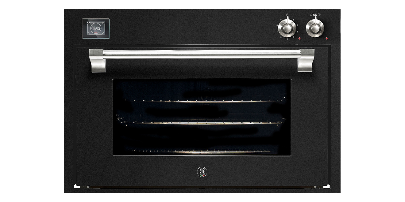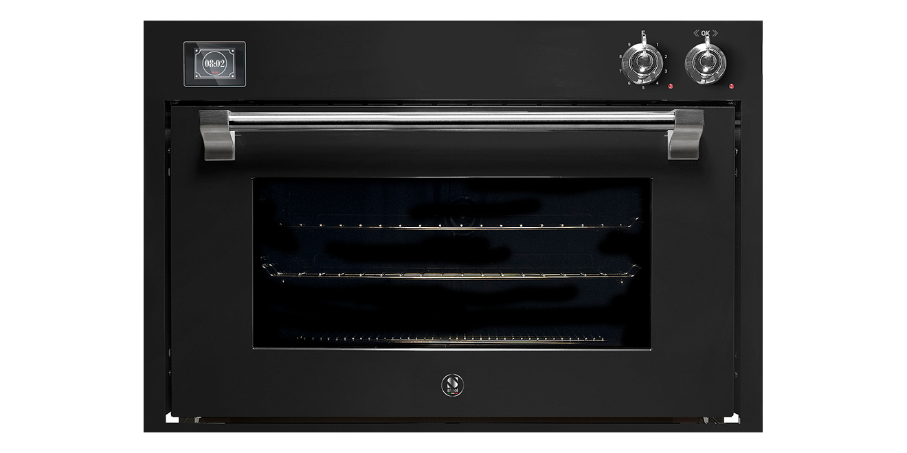 Der Ascot 90×60 ist ein elektrischer Multifunktions-Einbaubackofen mit einem großzügigen Garraum von ca. 91 Litern. Er verfügt über 11–15 Heizarten. Optional erhältlich mit Kombi-Dampftechnik. Die Temperatur lässt sich präzise von 50 °C bis 315 °C einstellen – ideal für feines Schmoren, Grillen oder knusprige Pizza.
