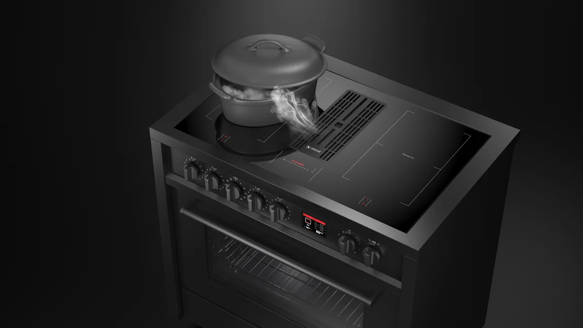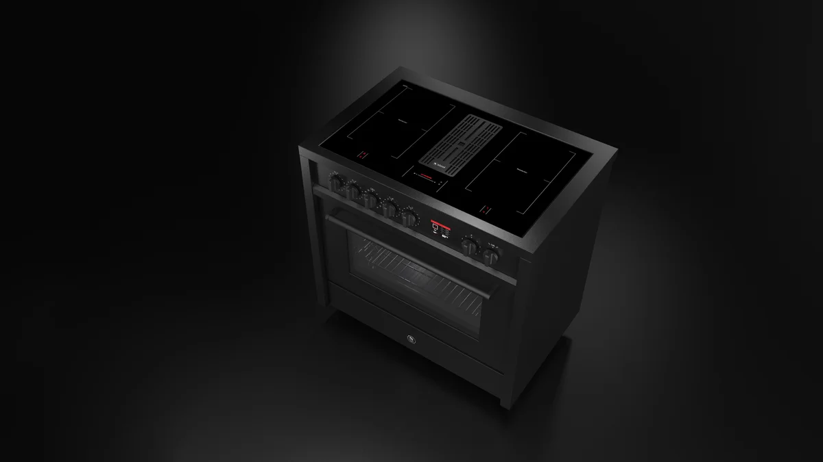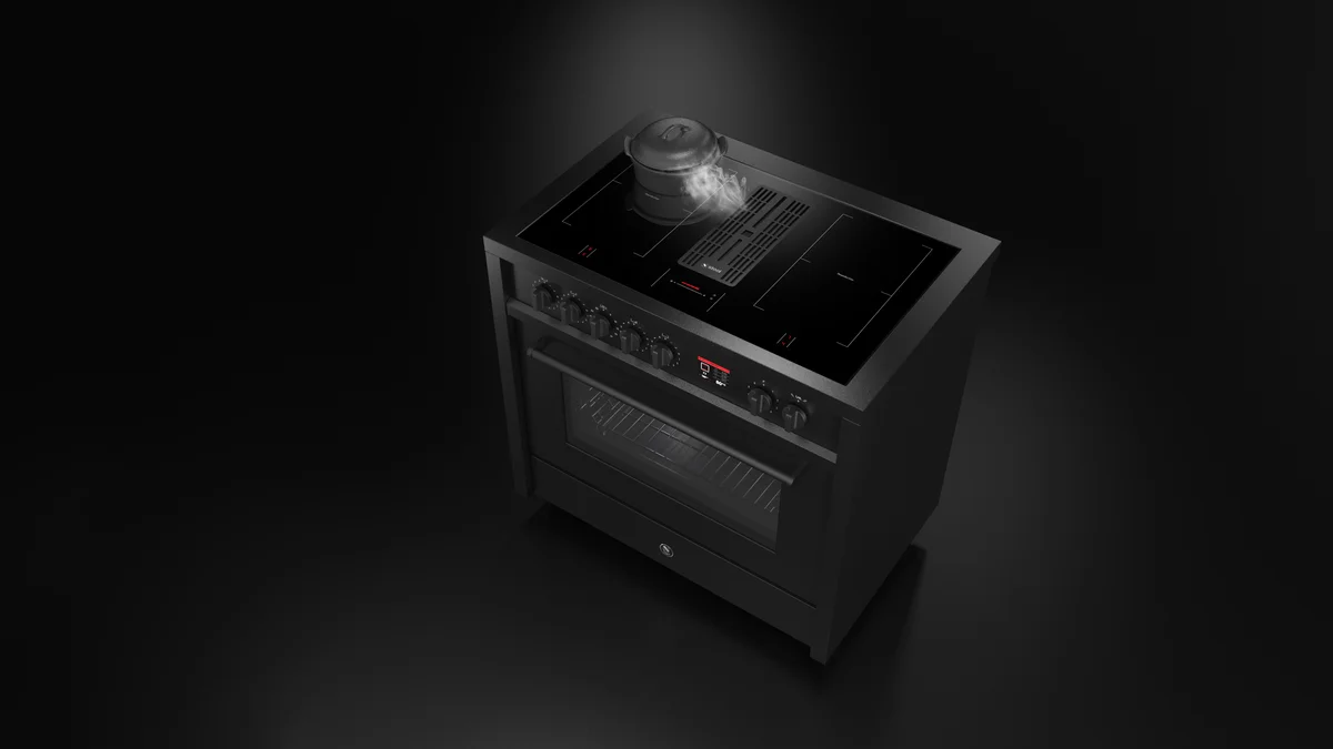 Innovatives Küchenzentrum: Die Enfasi Mistral 90 vereint Kochfeld, Backofen und Muldenlüfter in einem Gerät Mit dem integrierten Abzug, Induktionszonen und professionellem Backofen auf nur 90 cm Breite bietet das Gerät maximale Funktionalität bei kompaktem Design – ideal für moderne Wohnküchen mit Platzbedarf.