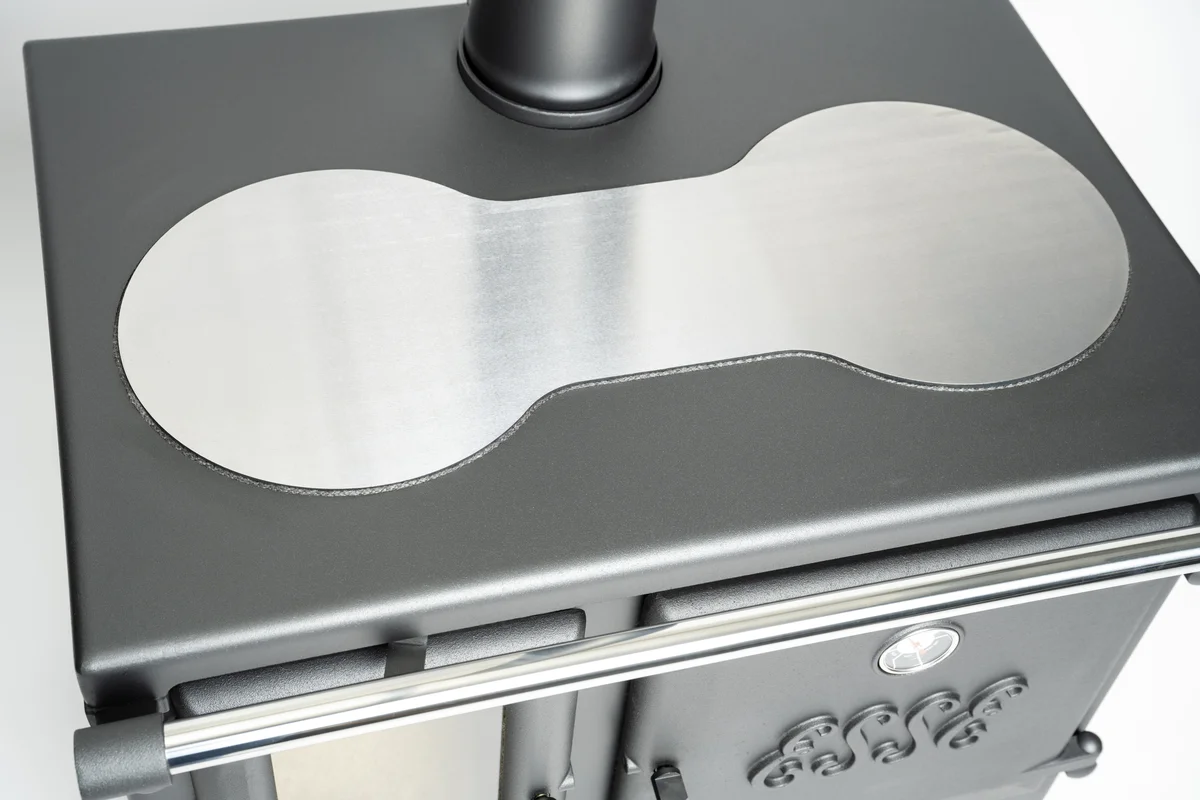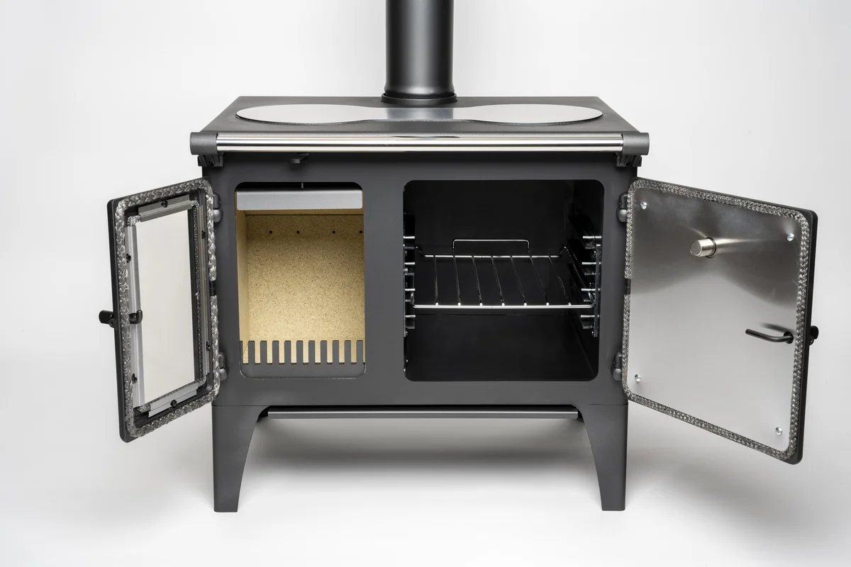 Mit nur 140 kg ist der Lightheart ideal für Orte mit wenig Platz und hoher Effizienzanforderung. Er liefert 4,6 kW/h Heizleistung, besitzt einen 47 Liter Backofen und eine kompakte Gusseisen-Kochplatte mit verschiedenen Temperaturzonen – ideal für autarke Küchenlösungen.