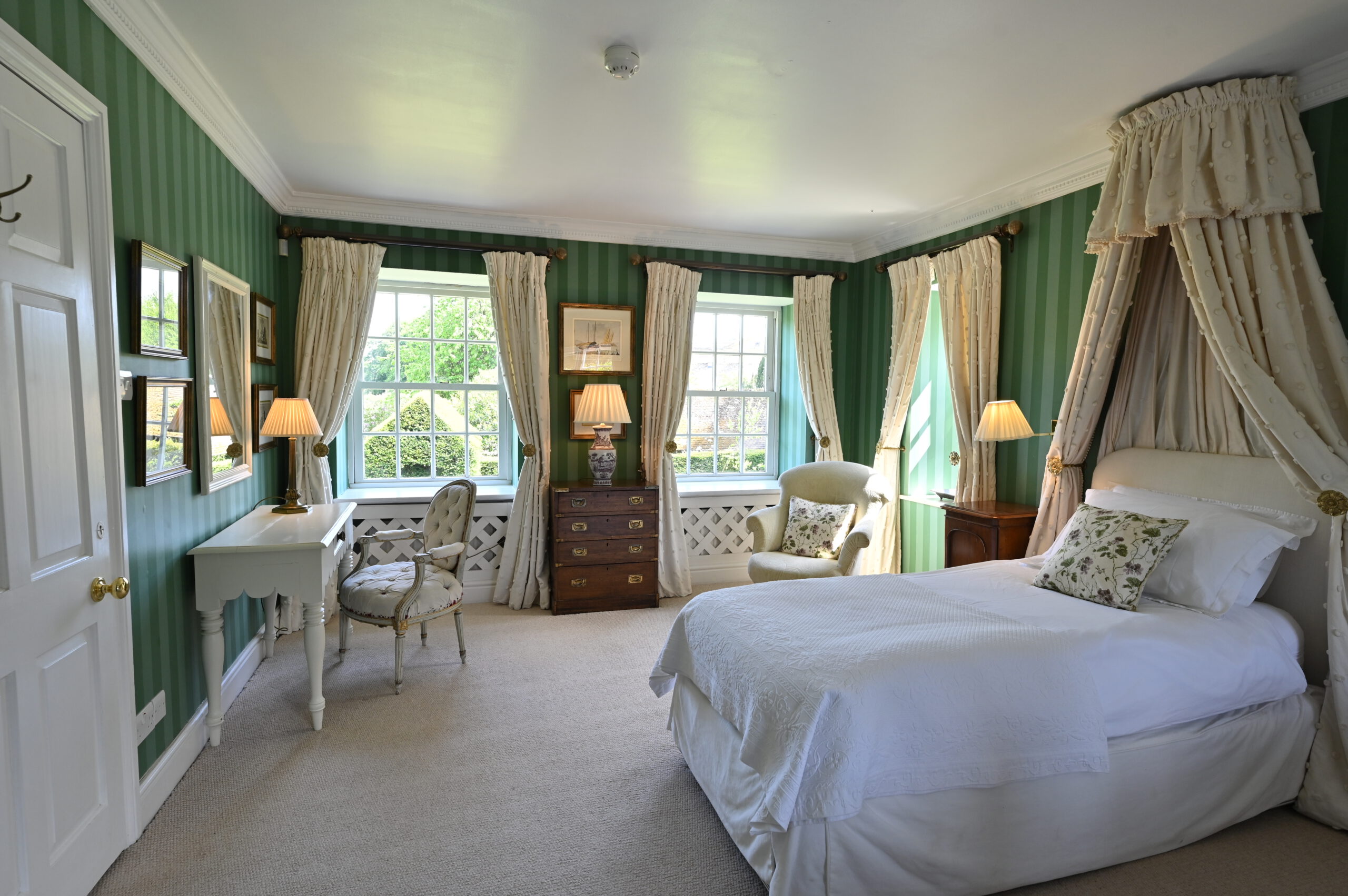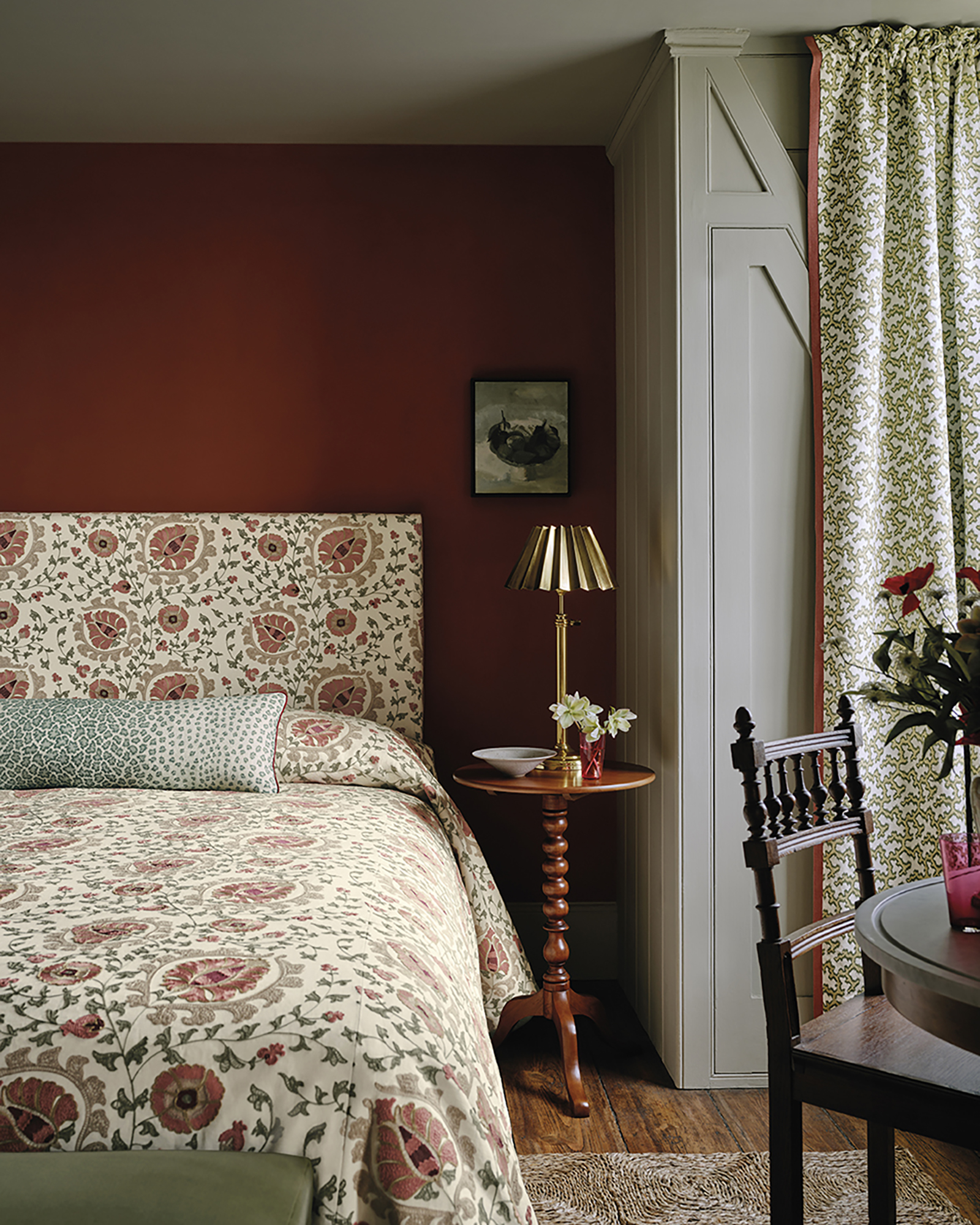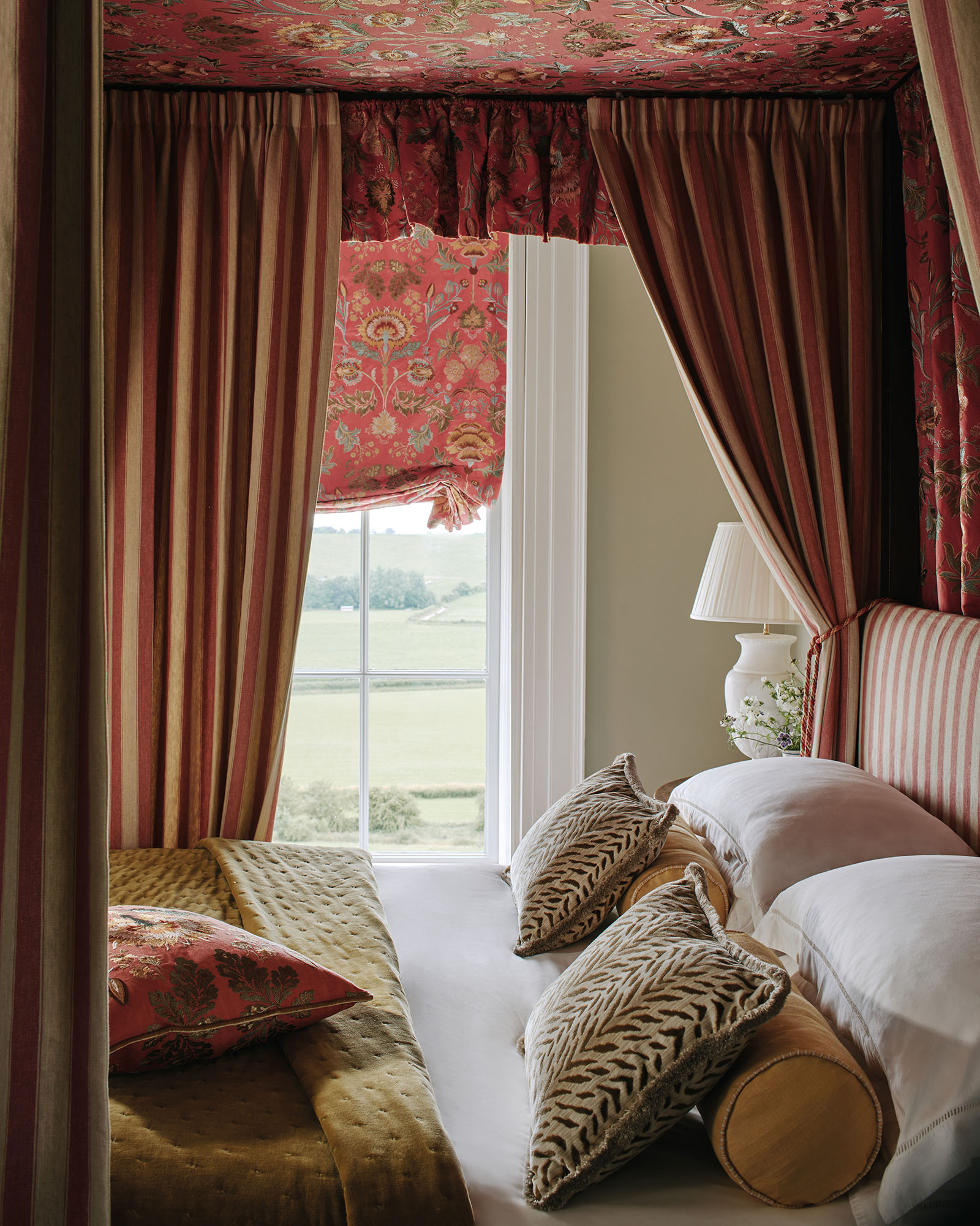 Typisch englische Muster, Texturen und Farben werden präzise aufeinander abgestimmt. So entsteht ein harmonisches Gesamtbild aus Textilien, Einbauten im architektonischem Rahmen.