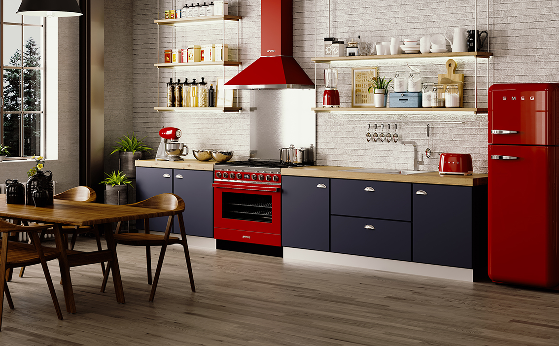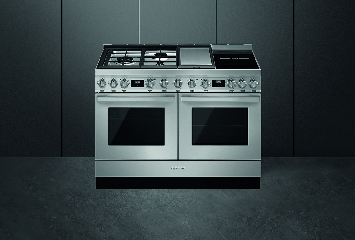 Der SMEG Portofino 120 vereint Farbvielfalt mit leistungsstarker Technik Mit seinem markanten 120 cm-Design, inspiriert von der mediterranen Küste, bietet der Portofino das Flair fachmännischer Kochkunst kombiniert mit modernsten Features – ein Statement in jeder Küche.